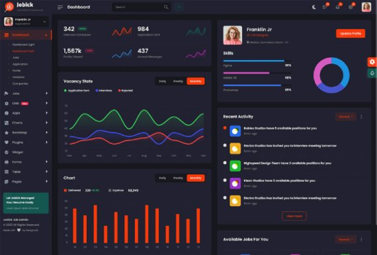 Admin dashboard User Interface design template for a Job Portal Admin. This template is ideal for the job portal, hiring admin, company hiring, job application, job vacancy, and any admin dashboard website.